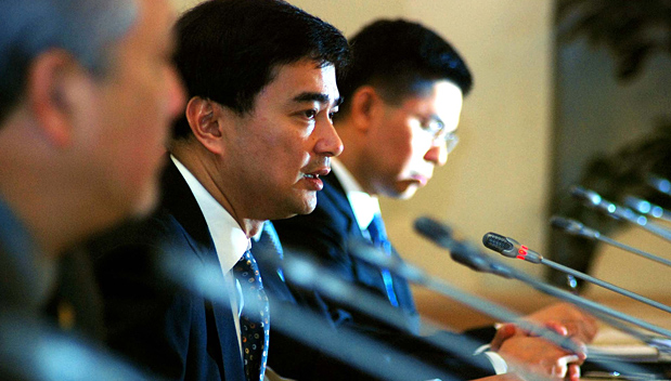 Abhisit Vejjajiva vormen, wiens coalitie aan de macht kwam in 2008 na een gerechtelijke ontbinding van de toen regerende partij.
