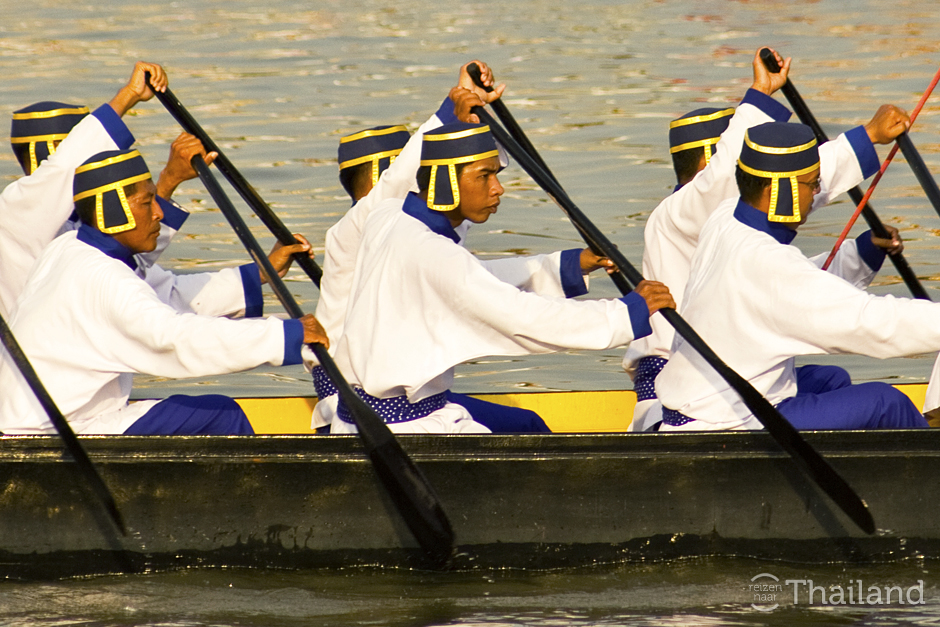 Tijdens de processie varen meer dan 2.200 roeiers in 52 traditionele praalboten over de Chao Phraya rivier vanaf de Rama VIII brug naar Wat Arun, de tempel van de dageraad.